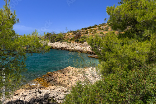 The path to the wild beach of Vela i Mala Draga on the coast of the island of Ciovo
