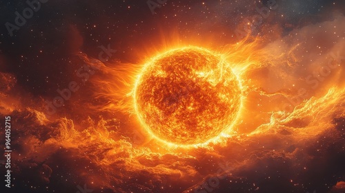 The Sun illustrated with textured patterns, incorporating rich, detailed solar surfaces and a radiant glow.
