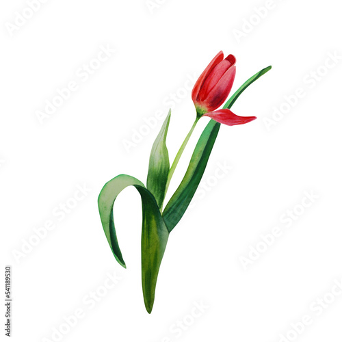 The tulip is red. Watercolor illustration. Birthday. Valentine's Day. valentine's day.