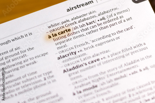 The word or phrase A La Carte in a dictionary.