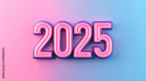 The year 2025 is written in neon pink and blue letters