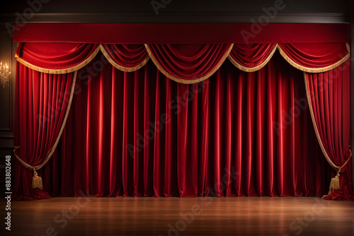 Theatrical curtain of red color