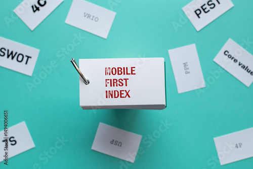 There is word card with the word Mobile First Index. It is as an eye-catching image.