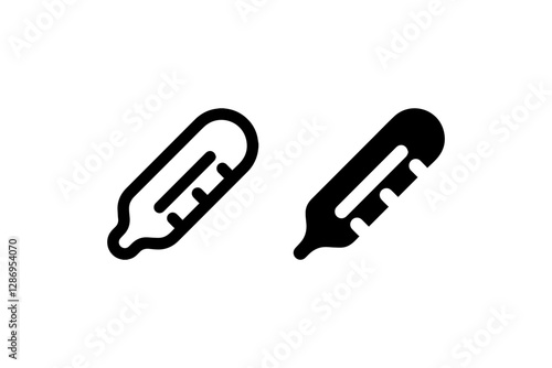 Thermometer Icon with Measurement Lines in Outline and Solid Styles Vector