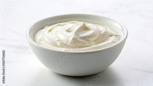 Thick and Creamy Sour Cream in a White Bowl on a White Background for Dairy and Cooking Use