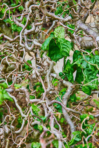 Thick tangled vines with large green leaves vertical stock image