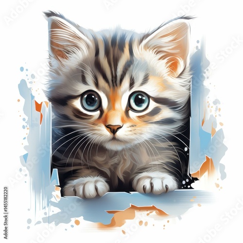 This cute cats sparkling eyes and soft colors create a charming focal point in a simple, uncluttered setting.