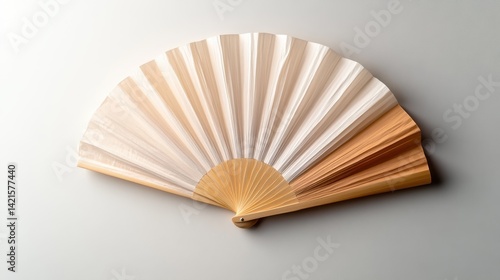This image showcases an elegant fan featuring delicate color gradients, emphasizing the subtle beauty of craftsmanship and design in a minimalist aesthetic.