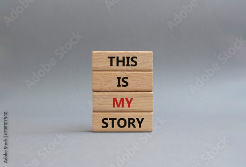 This is my Story symbol. Wooden blocks with words This is my Story. Businessman hand. Beautiful grey background. Business and This is my Story concept. Copy space.