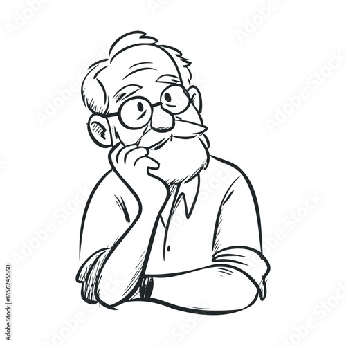 Thoughtful elderly man with glasses resting chin on hand
