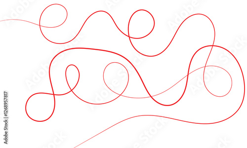 Thread line seamless pattern. Curvy intersections of ropes in organic smooth print. Abstract squiggly modern background with continuous lines. Vector Illustration .