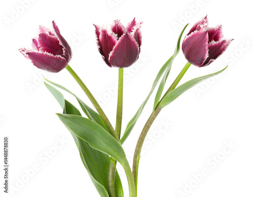 Three beautiful color tulips isolated on white