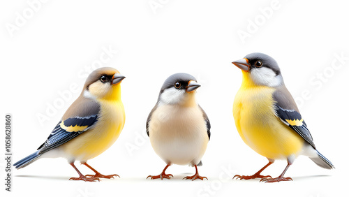 Three Birds Standing on a White Background
