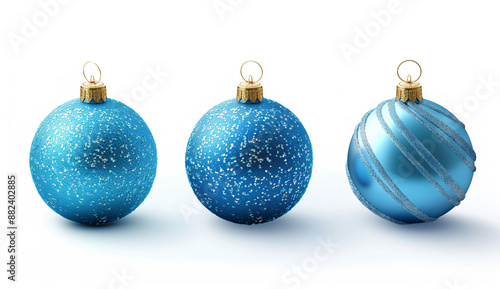 Three Blue Christmas Ornaments in a Row