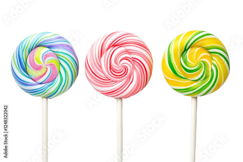 Three colorful lollipops with different colors and stripes. ,on transparent background.