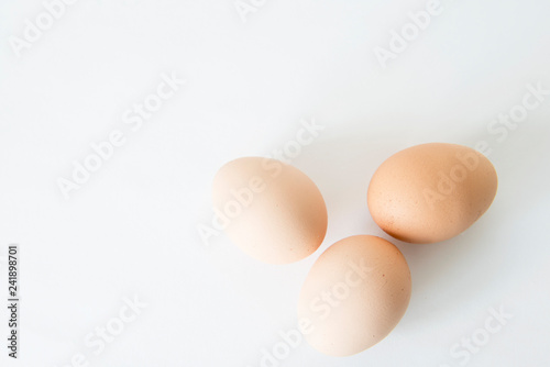 Three Eggs on the white table, three easter eggs