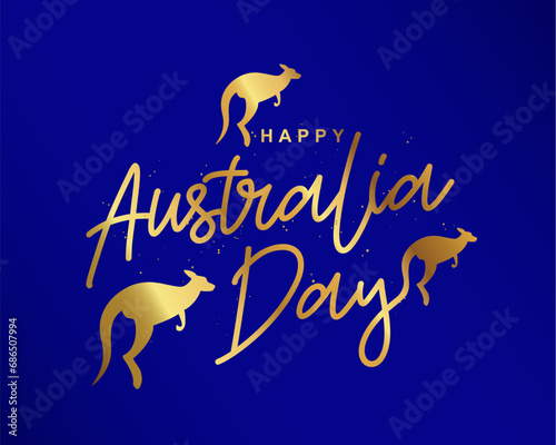 Three jumping kangaroos. Golden Calligraphy - Happy Australia Day. Poster for the day of the first landing. National Day.