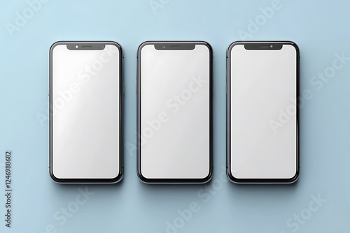 Three Modern Smartphones with Blank Screens on a Light Blue Background