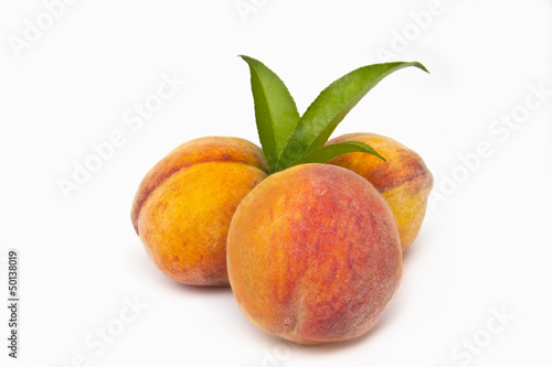 three peaches on a white background