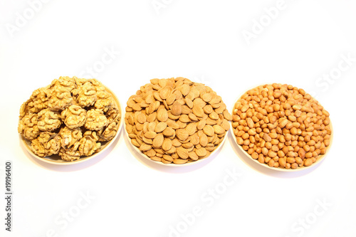 three plates with different nuts