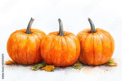 Three Pumpkins Watercolor Illustration