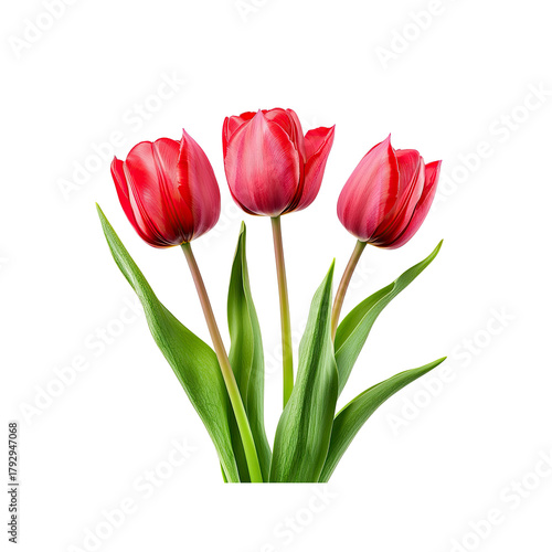 Three red tulips against on Transparent Background