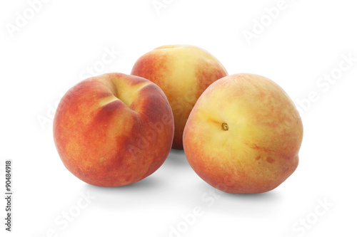 Three ripe peach on a white background