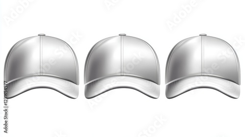 Three Silver Baseball Caps Mockup 3D Render, Product Design, Apparel Branding, Cap Template baseball cap, mockup
