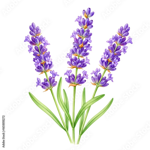 Three stems of lavender flowers isolated on transparent background