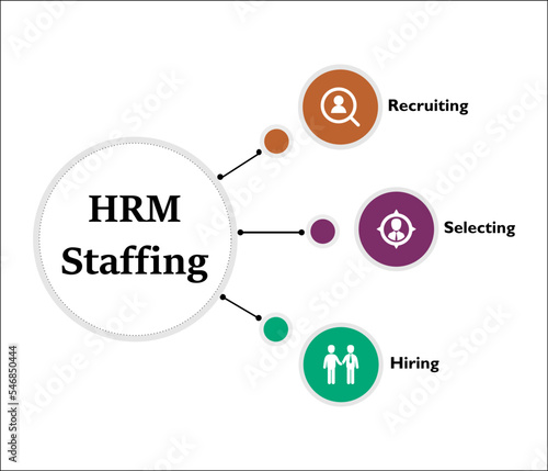 Three steps of Human Resource Management Staffing with icons in an infographic template