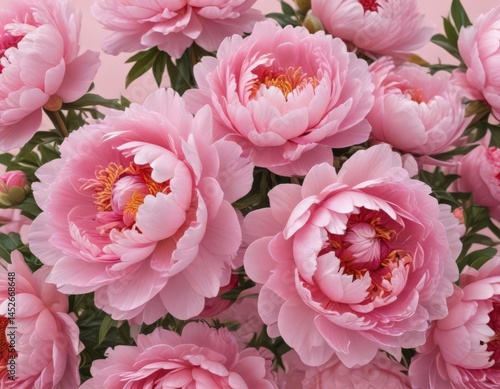 Tightly packed pink peony blossoms against a pale pink background , lush, flowers, wallpaper