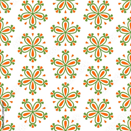 Tile green, white and orange seamless vector floral background for decoration or wallpaper or backgrounds, blogs, www, scrapbooks, party or baby shower invitations and elegant wedding cards
