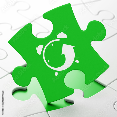 Timeline concept: Alarm Clock on puzzle background