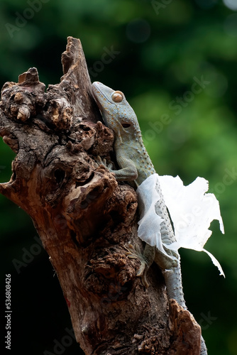 Tokay gecko moulding its skin on a tree