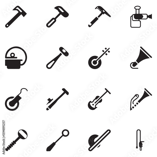 Tools icons set. Instruments signs collection. Tool simple icon. Vector Black silhouettes. with white background