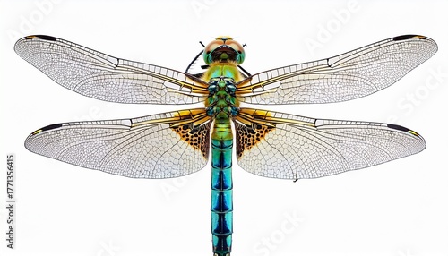 Top View Macro of Colorful Dragonfly Insect Isolated on White Background