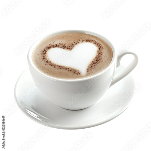 Top view of a latte in a black cup with heart-shaped latte art, isolated on a transparent background. Perfect for coffee shop, cafe, and beverage-related designs.