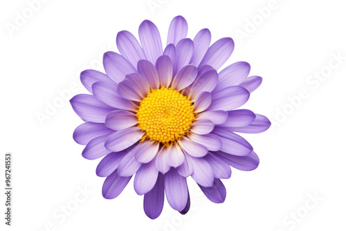 Top view of a single purple flower isolated on white background
