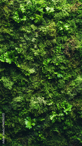 Top view of lush green moss forming a rich, natural background texture. Symbolizes life, growth, and nature’s softness—perfect for organic design, eco themes, or botanical visual elements.
