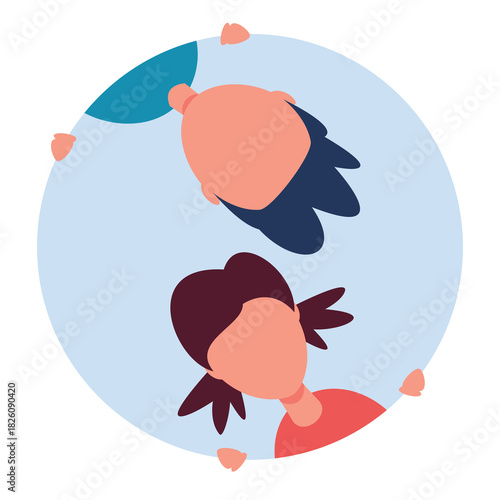 Top View Of Two Children Embracing In A Light Blue Circle With A White Background Representing Unity And Friendship