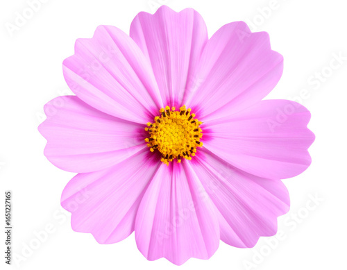 Top-Down View of Single Pink Cosmos Blossom, Isolated on Transparent Background