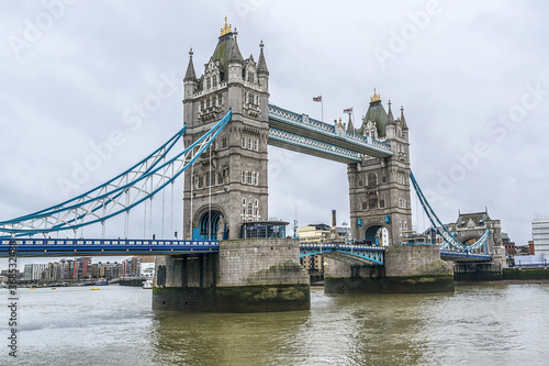 Tower Bridge (1886 - 1894) over River Thames - iconic symbol of London. Tower Bridge is close to Tower of London, from which it takes its name. London, England.