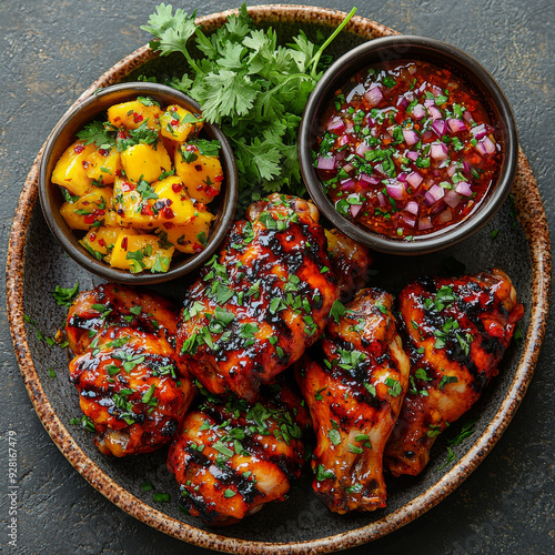 Traditional Barbecue Chicken Wings with Pineapple and Cilantro Garnish