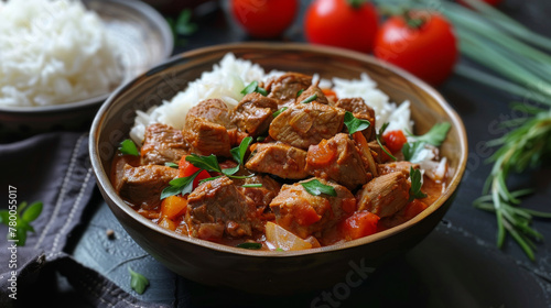 Traditional bulgarian goulash with rice