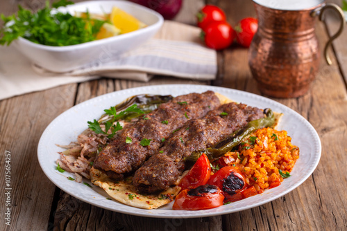 Traditional delicious Turkish foods; Adana kebab