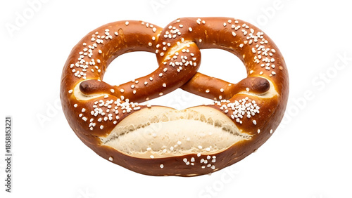 Traditional German Bavarian Pretzel with Coarse Sea Salt, Golden Brown Baked Soft Lye Crust and Fluffy Interior, Authentic European Snack for Oktoberfest or Bakery Concept