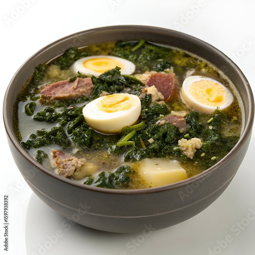 Traditional Greek Easter soup, Magiritsa, served in a bowl .