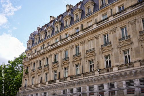 Traditional Parisian architecture with elegant balconies and old stone facade