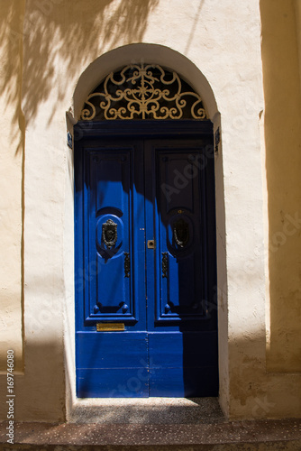 Traditional wooden painted blue door in Malta