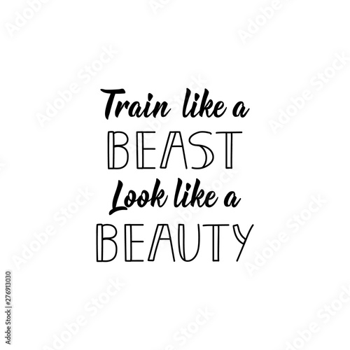Train Like a Beast Look Like a Beauty. Vector illustration. Lettering. Ink illustration. Sport gym, fitness label.